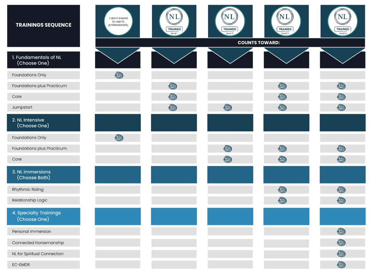 Core is ideal for those with access to horses who want to be recognized as NL Trained Level 1 and move a step closer to certification.